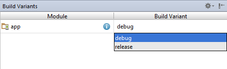 3 - Once the Build Variants tool window is displayed, change the Build Variant settings for all the modules listed from debug to release: