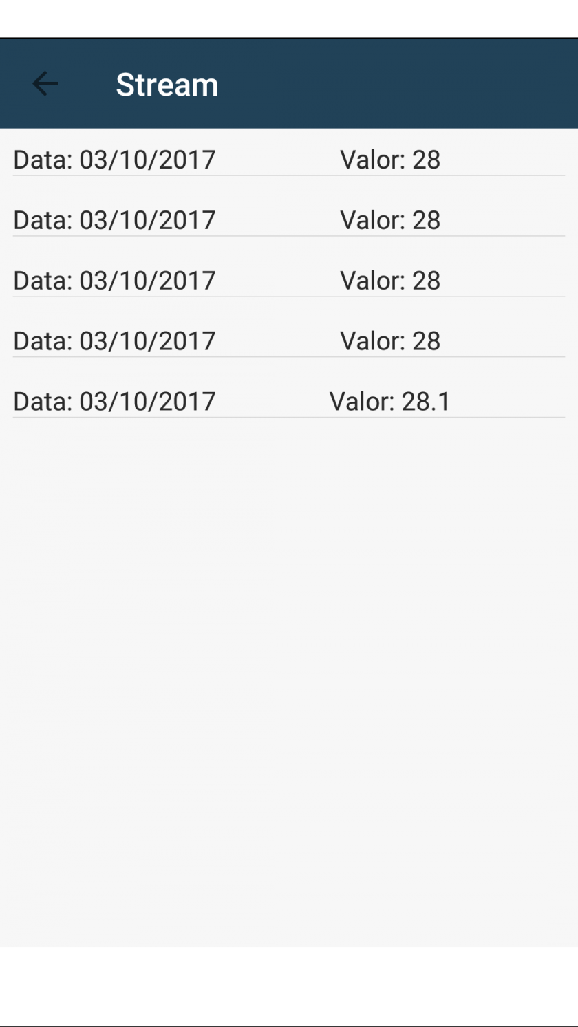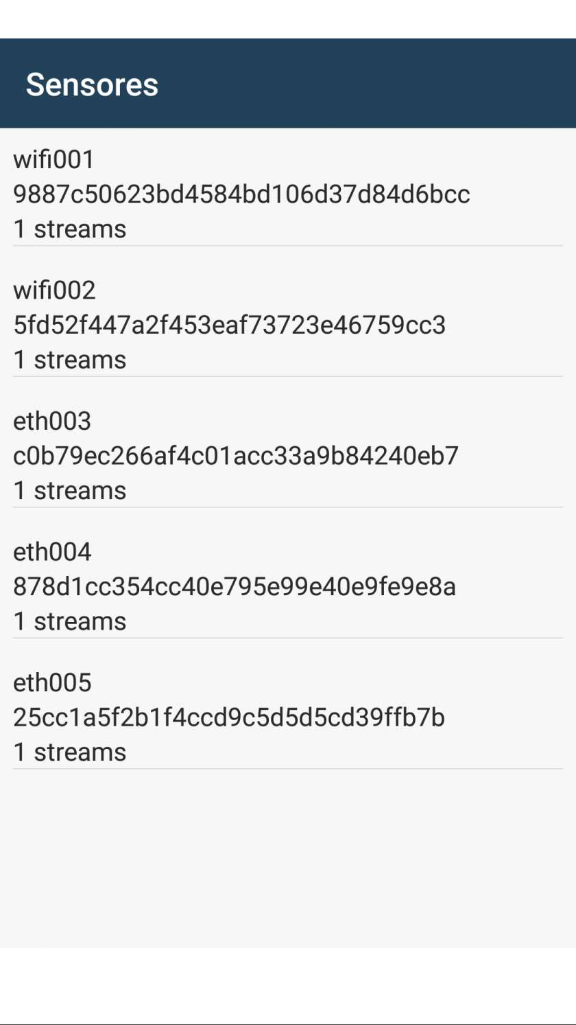 Desenvolver um aplicativo Android do ponto de vista funcional, que permita (I) listar os sensores já existentes na conta do usuário, (II) visualizar os detalhes de um sensor, (III) acompanhar os dados mais recentes de uma stream, (IV) além de registrar, tanto novos sensores quanto novas streams.