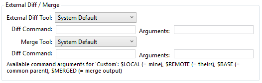 No SourceTree vá emTools ➜ Options ➜ Diffe verifique se as configurações são as mesmas da figura abaixo. Isso deixará a cargo do Git instalado no sistema a definição de quais ferramentas serão usadas para cada ação.