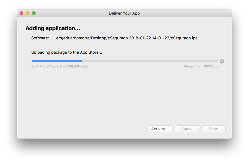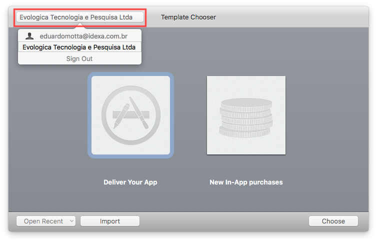 Verifique se o perfil logado corresponde ao perfil de desenvolvimento do seu projeto no XCode. Faça o login da conta correta caso necessário. Clique em "Chose" e selecione o arquivo exportado (com extensão ".ipa").